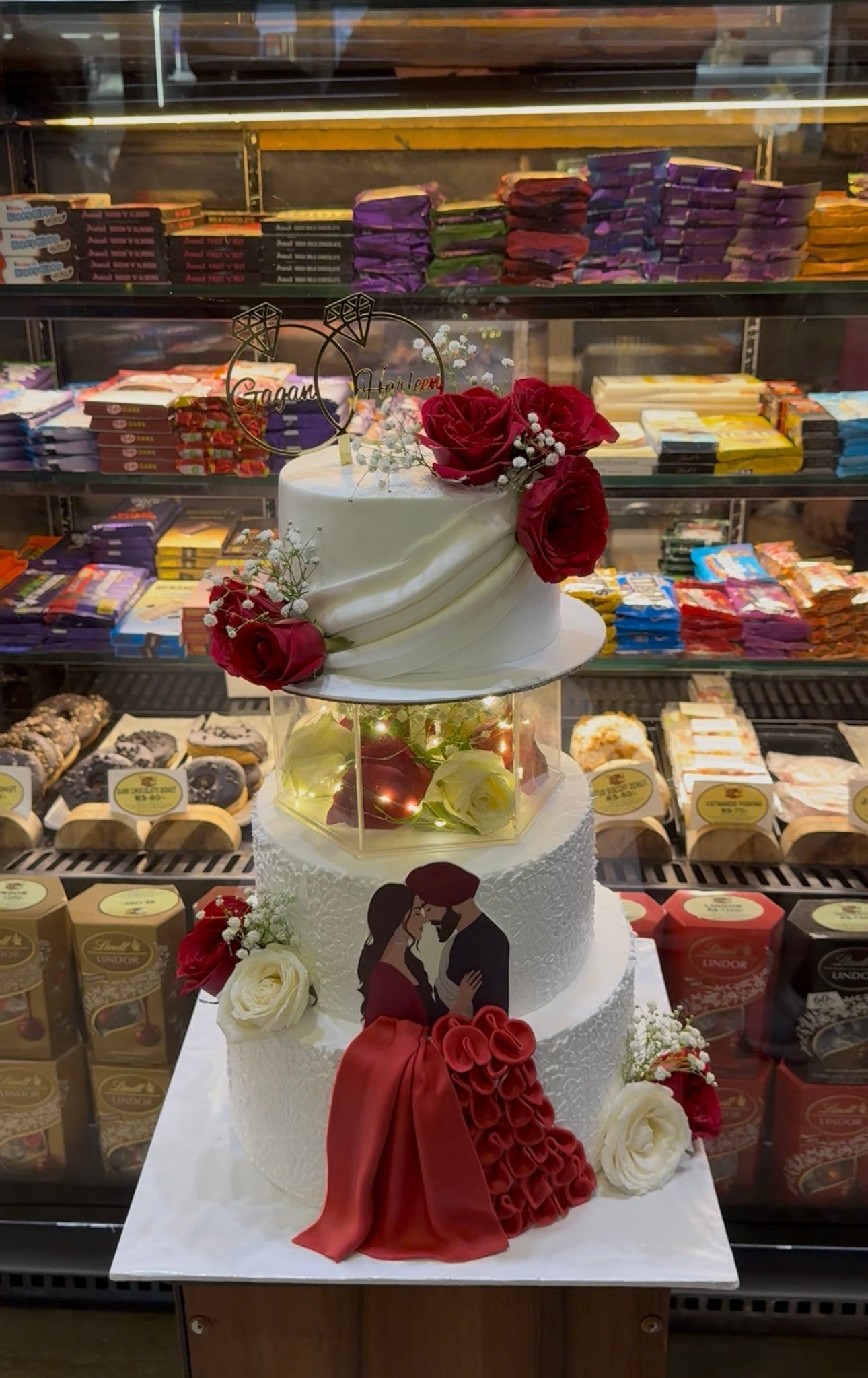 This breathtaking cake is a celebration of love’s journey, designed as a majestic three-tier masterpiece. Each tier is distinct yet harmoniously connected, symbolizing the milestones in a shared journey.