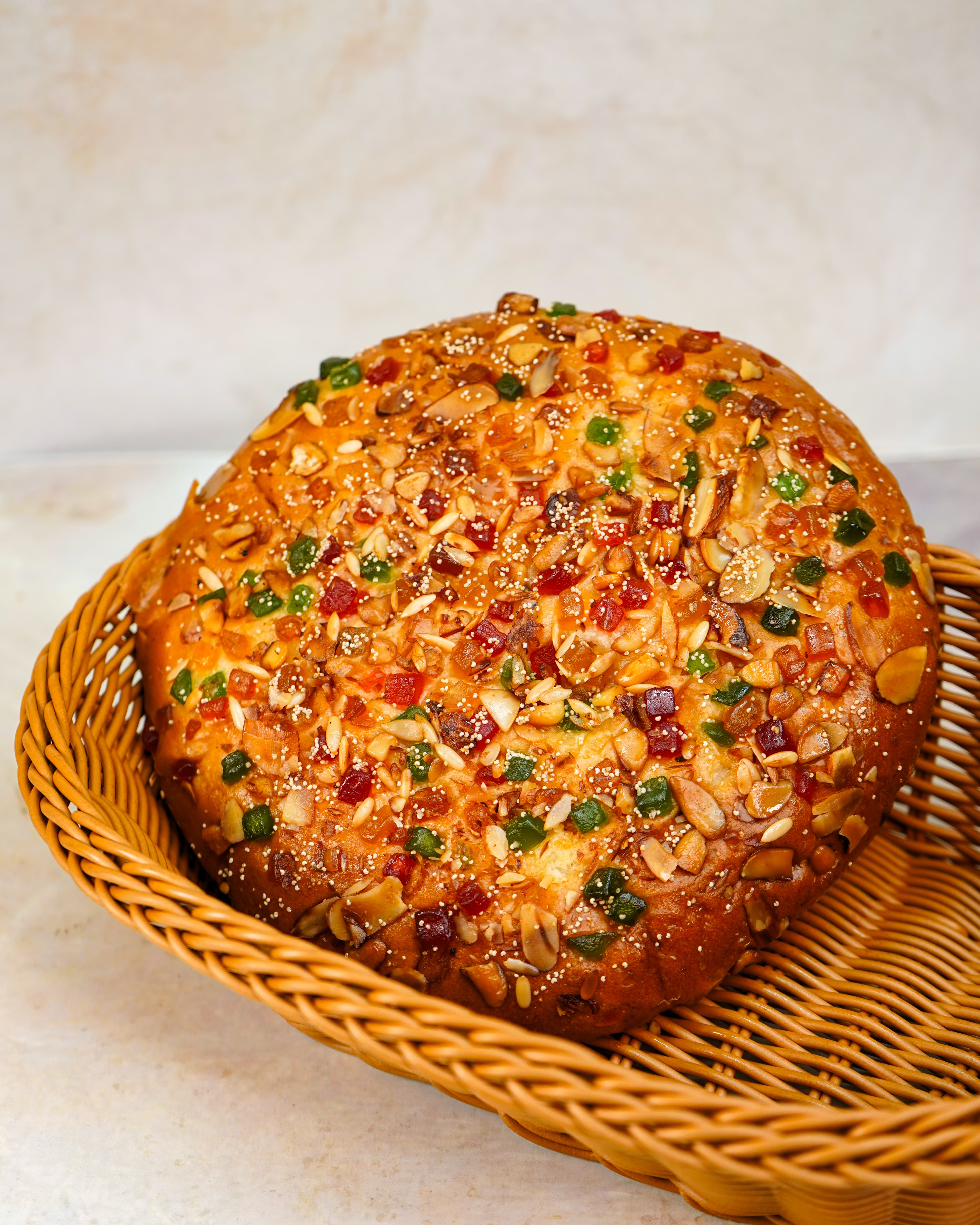 A soft and fluffy delight made with a sweet mix of colorful cherries and generously topped with premium dry fruits. Every bite offers a perfect balance of mild sweetness, fruity freshness, and nutty richness.